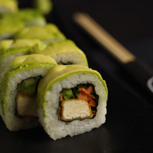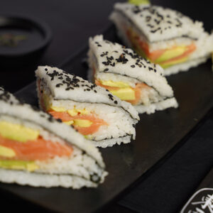 ₪210.00רול צמחוני/טבעוני עטוף באבוקדו, רול עטוף בסלמון/ טונה אדומה, סושי סנדוויץ' , רול חם עם שרימפס, מאקי סלמון/ טונה אדומה ושני ניגרי סלמון וטונה אדומה