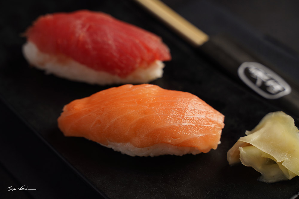 שני ניגרי עטופים בסלמן/ טונה אדומה